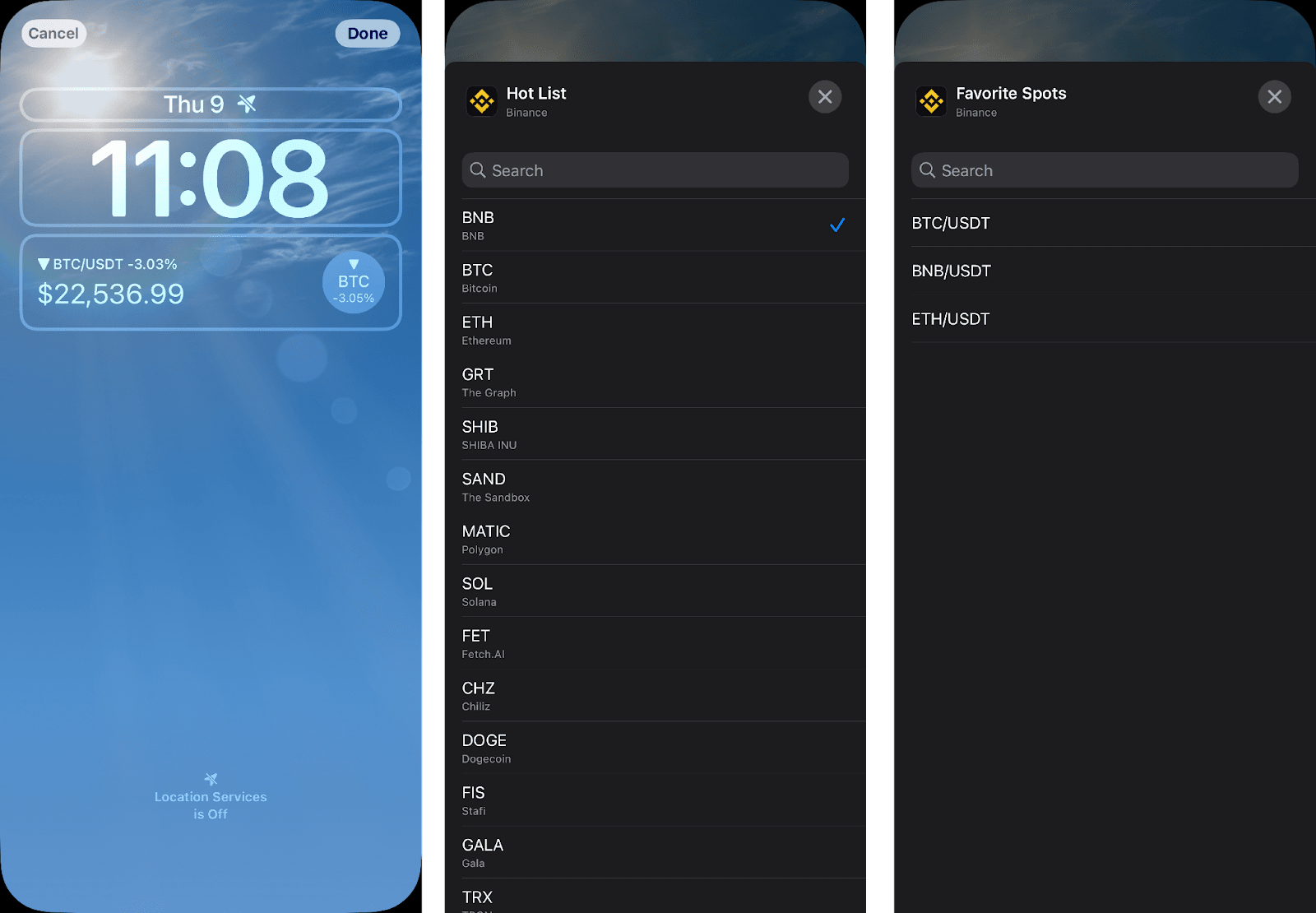 5、现在,可以在主屏幕上看到小组件了。点击一种代币,会直接定位到币安App中该代币的现货交易页面。